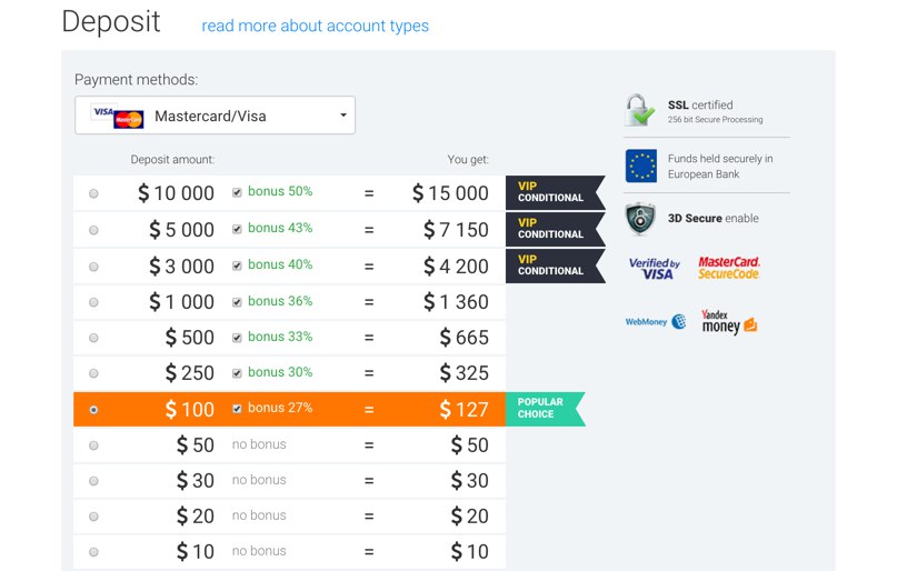 Special for March, IQ Option is going to give 30% on deposits from $100 (EUR, GBP) bonus! Up to 50% on your deposit.